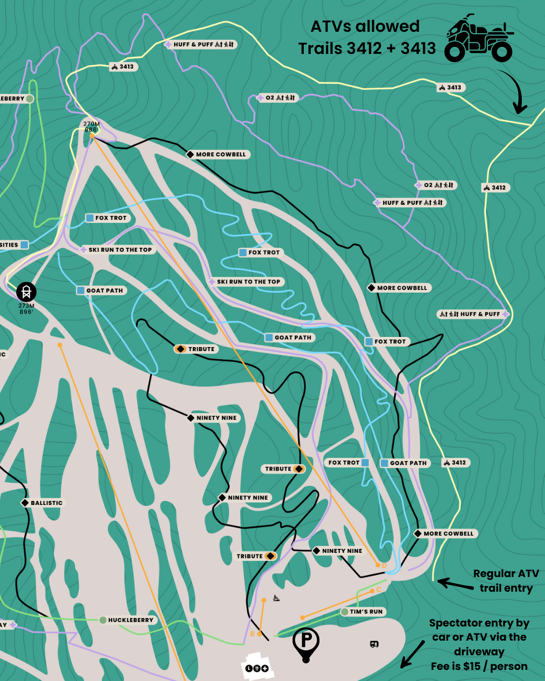 ✅ ATV/UTV use on the Mountain is otherwise only permitted on the driveway to access parking