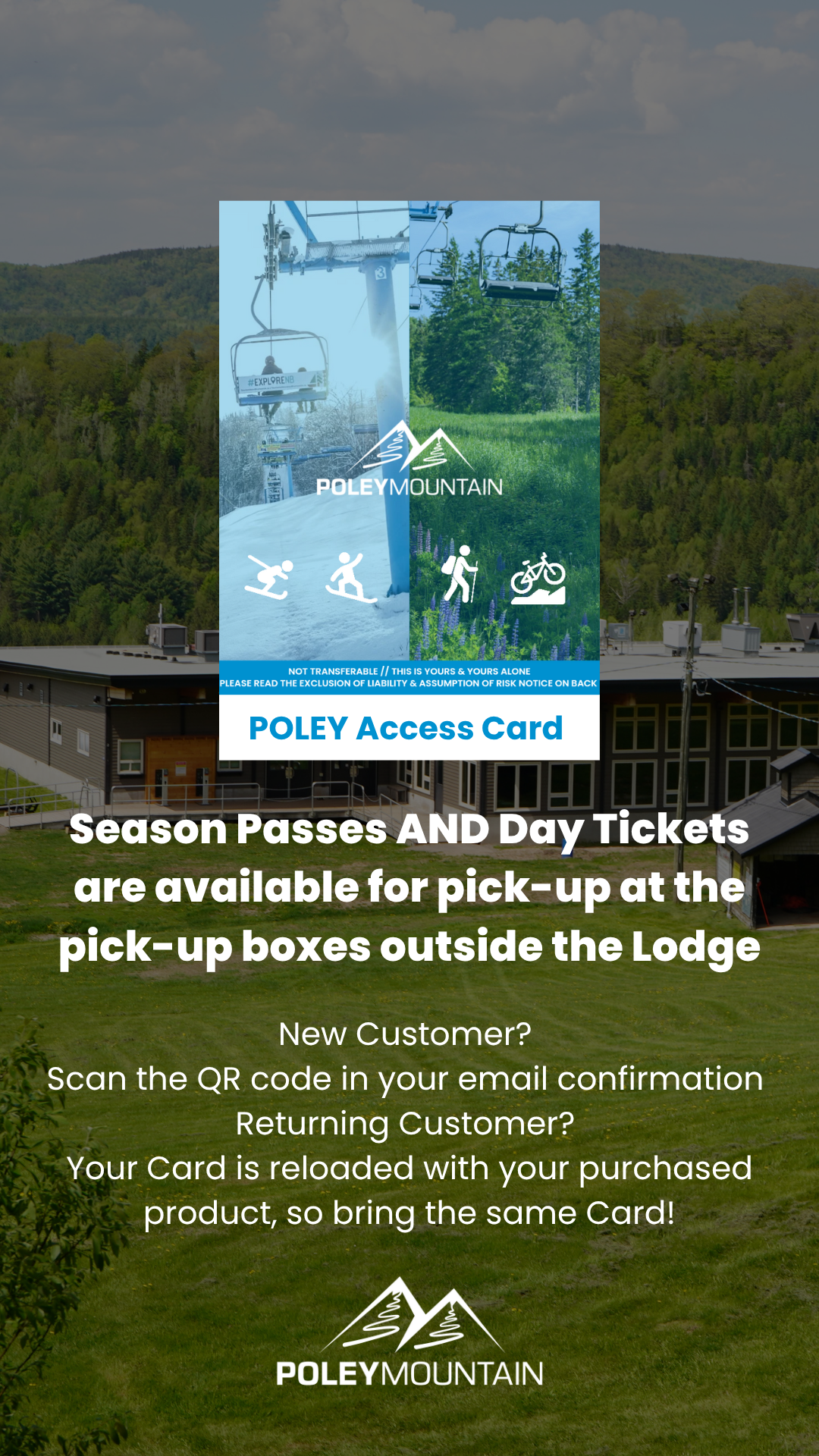 Les cartes sont rechargeables, donc si vous en avez une d'une saison passée, veuillez l'apporter avec vous - idem pour les détenteurs de billets journaliers et les détenteurs de pass saisonniers