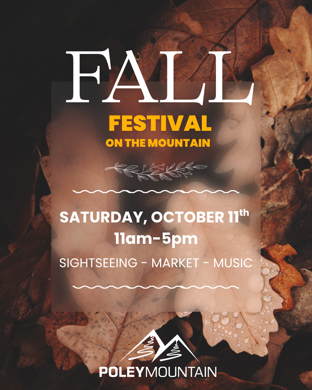 Billet pour le festival d'automne requis pour toutes les activités de plein air, c'est-à-dire les visites touristiques en télésiège, les randonnées sur les sentiers et les promenades en calèche.